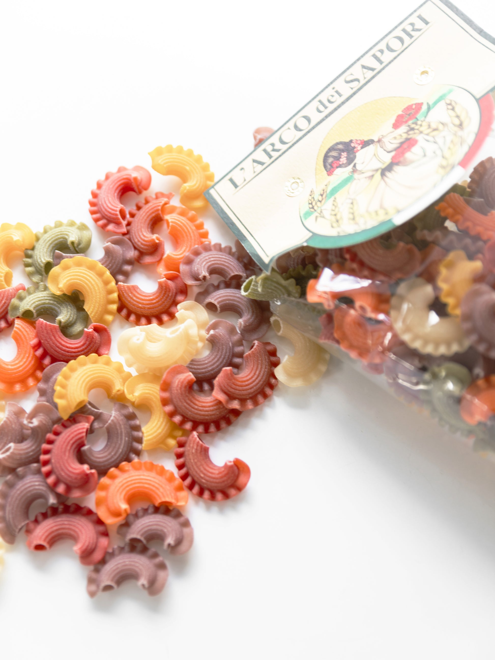 Durum wheat semolina, black carrot, tomatoes, spinach, curcuma and red beet (powdered dried) 2%.