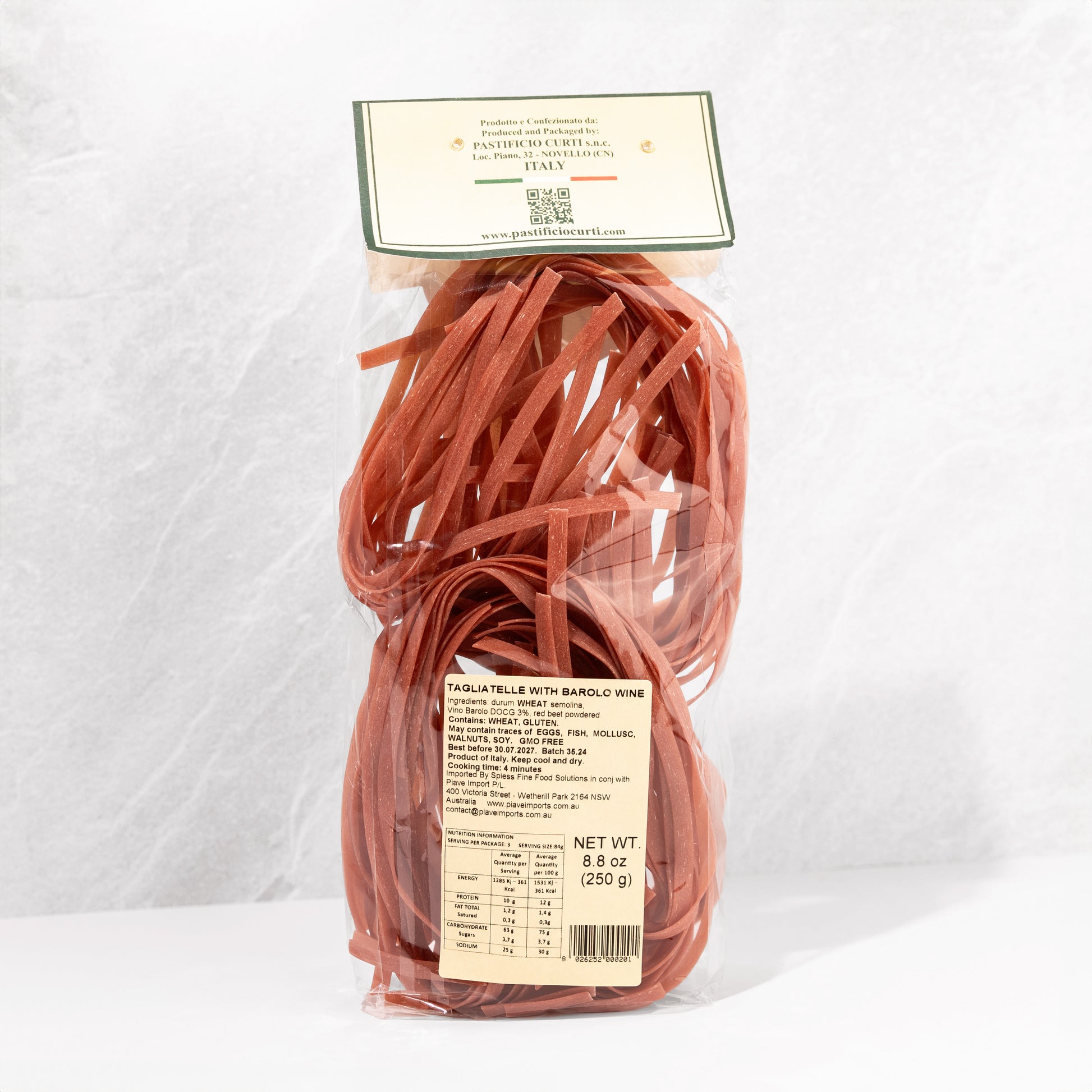 250gm hand cut tagliatelle infused with DOCG Barolo
