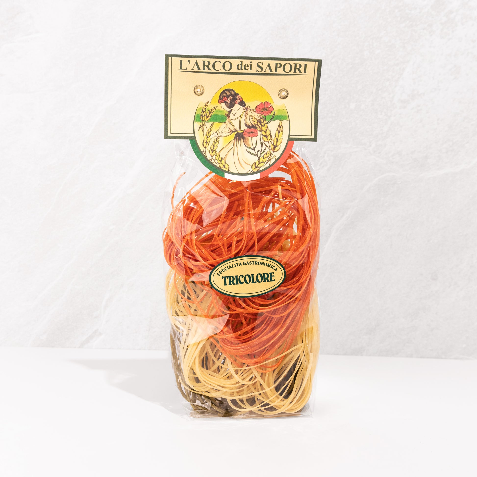 Indulge in the tantalising flavours of our Tricoloured Tagliolini! With each twirl of the fork, you'll experience a symphony of flavours that will ignite your taste buds and leave you craving more. Made with the finest durum wheat GMO FREE and crafted into a unique crest-like shape, this pasta is not just visually stunning but also boasts numerous delightful benefits.